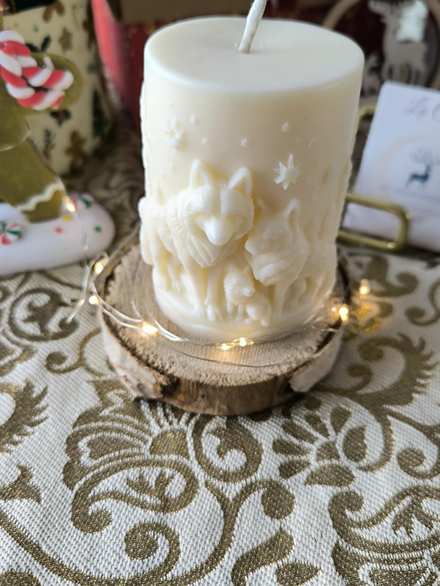A travers cette bougie, baignez dans une ambiance de mystères , de protection représentés par les loups. La finesse des détails ravira les plus exigeants et la pureté du blanc trouvera sa place dans n'importe quelle décoration d'intérieur.