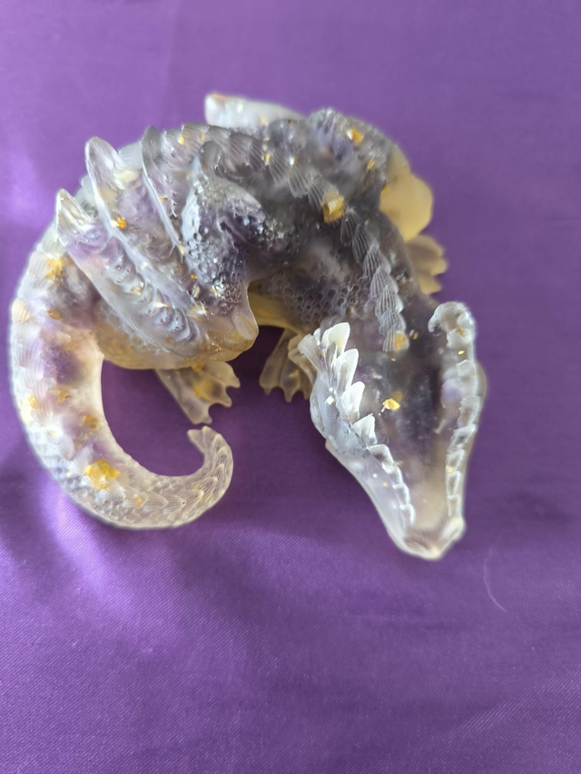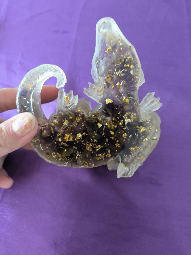 Lézard, améthyste et résine