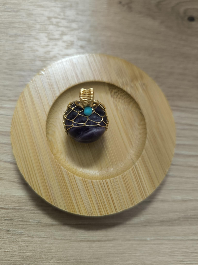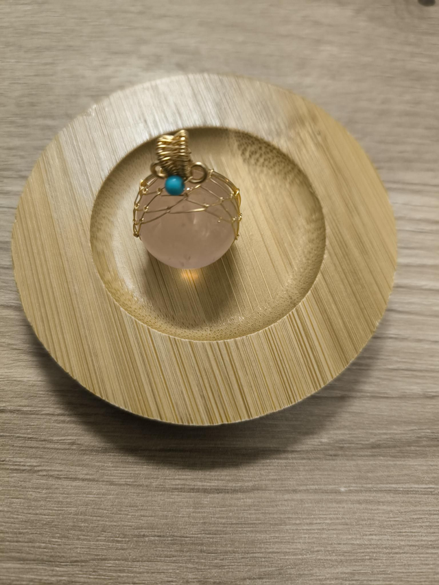 Collier avec pendentif en forme de sphère , améthyste ou quartz rose